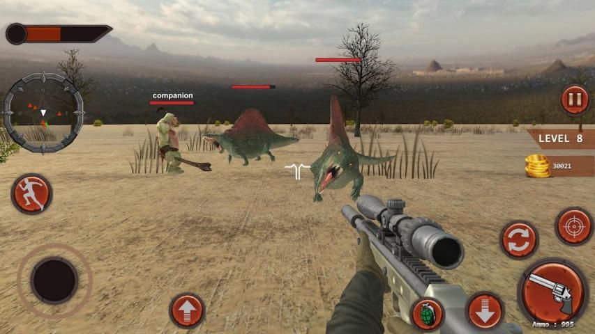 Companion will help you to survive and hunt dinosaur by axe or sword. But you have powerful weapons like as machine gun shoot, ak-47,