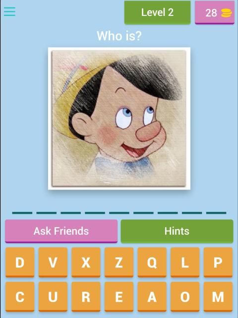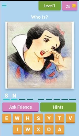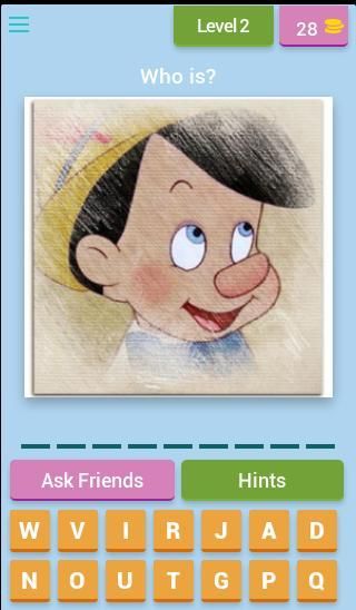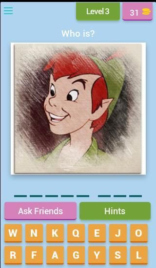 Pada setiap tingkat Anda akan ditampilkan karakter dari salah satu dari banyak Classics Disney dan Anda akan harus menebak nama untuk mengakses tingkat berikutnya.