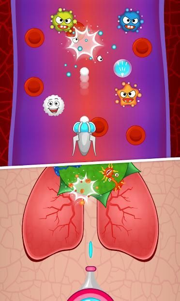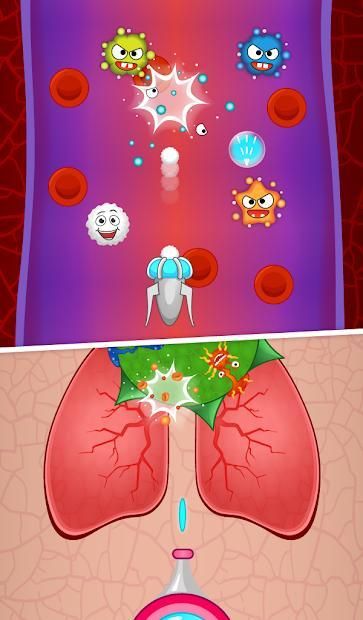 • Paru-paru: Gunakan alat bantu pernapasan, bunuh bakteri di permainan mini Archer, dan pilih inhaler untuk melegakan saluran pernapasan.