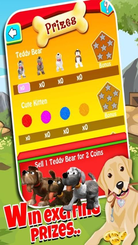20 Berbeda anjing kartun anjing yang membuka hadiah bonus dan hadiah lebih bebas! Lebih baik dozer koin Anda, semakin banyak hadiah Anda membuka :)