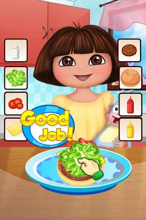 Dora memasak burger game ini akan mengajarkan anak-anak bagaimana membuat burger yang baik