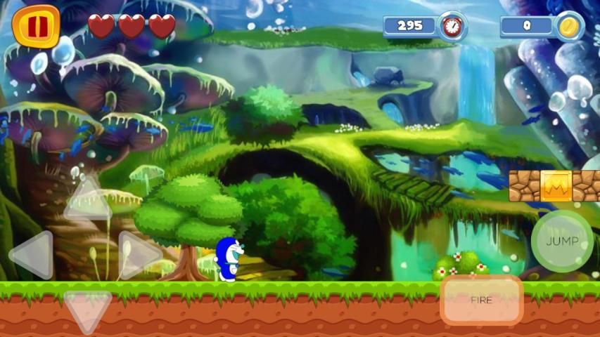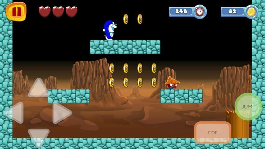 doramon permainan Cobalah untuk mencapai skor max dalam petualangan nya, berlari dan melompat dan mengalahkan musuh dalam tanah petualangan dari Cula doremon permainan Kucing.