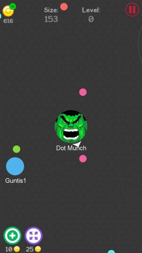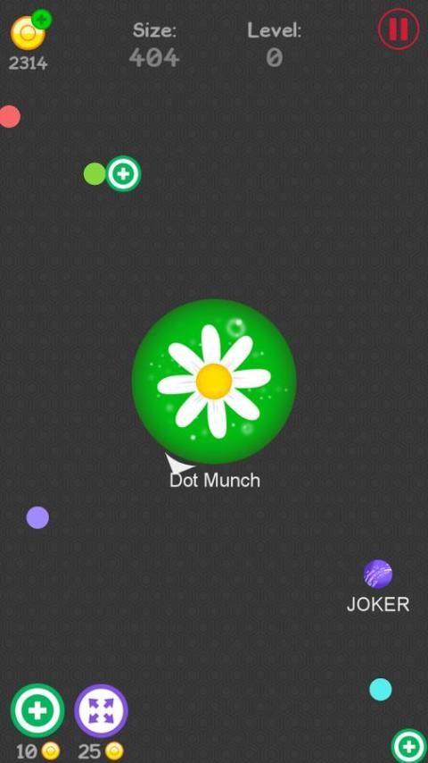 Makan titik-titik kecil tumbuh dalam ukuran dan menjadi gumpalan terbesar dalam permainan.