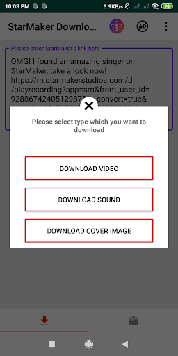 * Jika Anda perlu mengunduh lagu dari Starmaker App, APP "StartDownloader" akan Bantuan Unduh audio dan video dari Smule.