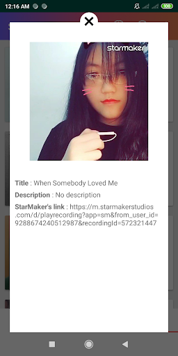 Semua file video dan audio dilayani langsung dari server Starmaker. Kami tidak menyimpan / mengunduh / cache. Audio dan / atau video. Silakan periksa Ketentuan Starmaker sebelum menggunakan! "