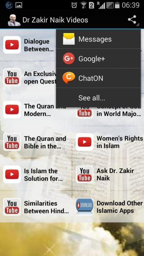 Dr Zakir Naik Videos is an application that contain Islamic videos of many categories, mainly taking about comparative Religions. And the application works with internet connection but it has a lot of features.
