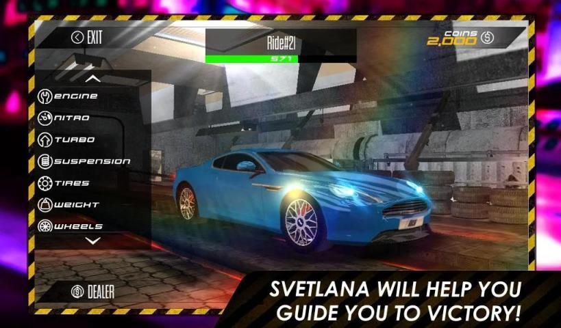 Svetlana, khas cewek tentara bayaran Rusia Anda, dengan pengaruh tinggi di dunia drag race bawah tanah, di sini berdiri di sisi Anda dan membantu Anda memburu gelar balap drag Anda. Dia akan memberikan semua tips dan trik bagaimana untuk menavigasi mobil Anda untuk memenangkan reli balap drag ilegal di jalan-jalan.