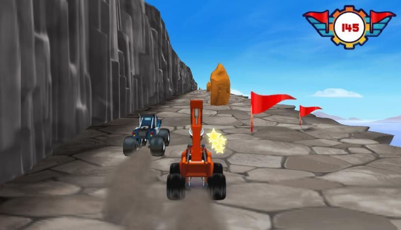 This game will outstand you, boys, and we say boys because it's a car racing game and well, let's face it, there are few girls that love to play cars games, especially racing cars, and you boys sure do have the skills to play this kind of games. We uploaded this game category for boys, and the first game from this category is called Blaze Dragon Island Race. Blaze and his best friend AJ were challenged by their rival, Crusher, on a race along the dangerous Dragon Island, but Crusher is not playing fair, using cheat tips, so, your two best friends, Blaze and AJ are really counting on your help. You have to watch out for the obstacles such as big rocks and oil puddles, and on your way up to the top try to collect as many red flags as possible in order to beat Crusher.