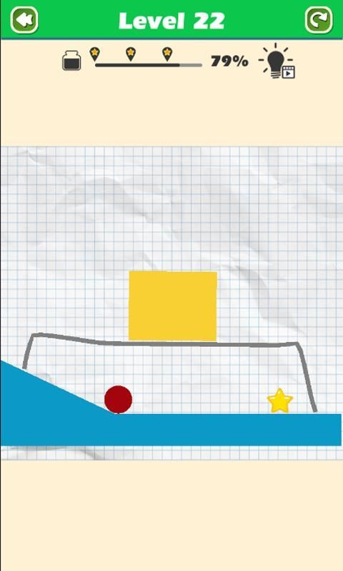 You can draw any shape you want and they are all followed by physics rules when you draw your line for red ball to roll on it and meet the yellow star.