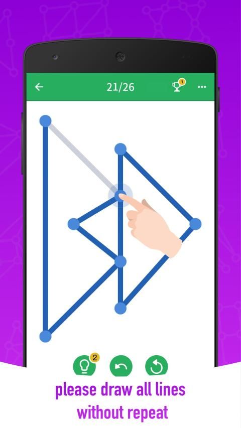 Aturan mudah, bawa tantangan otak besar. Coba gunakan satu ketuk untuk menghubungkan semua garis di layar.