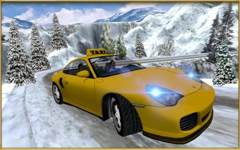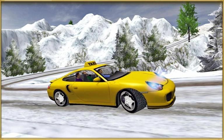 Mendorong realistis taksi untuk menjemput penumpang di pegunungan salju dengan turis. Bermain sebagai sopir dingin dan menikmati sekitar pegunungan jatuh hidup salju