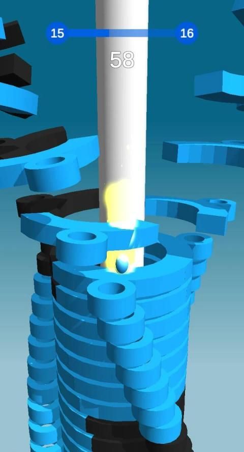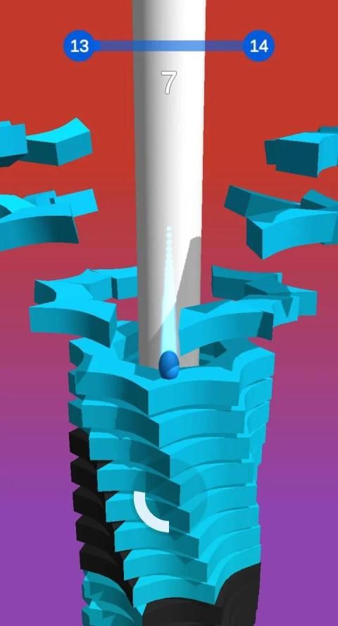 Hold onto the ball as long as possible to get fireball combo to blast through black platforms and reach the end of the stack to achieve victory!