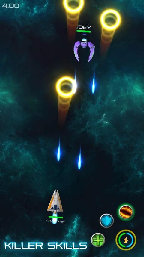 choose from different spaceships all having different attributes, and select the skills like "asteroid calling" , "space mine" , "bullet spray" or whichever that you like to defeat your opponent.