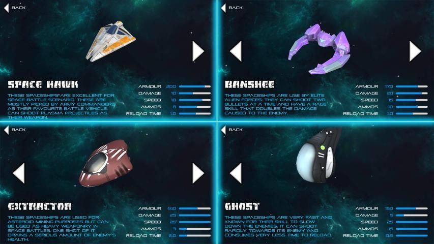 memilih dari pesawat ruang angkasa yang berbeda semua memiliki atribut yang berbeda, dan pilih keterampilan seperti "panggilan asteroid", "milikku ruang", "peluru semprot" atau mana yang Anda suka untuk mengalahkan lawan.