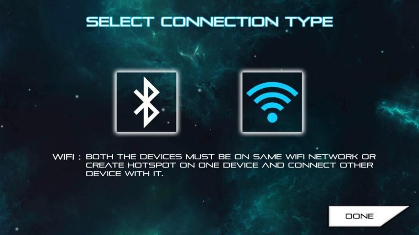 semua perangkat harus berada pada jaringan wifi yang sama atau salah satu perangkat dapat membuat hotspot dan perangkat lain dapat terhubung ke itu. Dalam permainan, pilih wifi di jenis koneksi dan orang yang menciptakan hotspot harus menekan tombol tuan rumah, jika tidak ada Anda menciptakan hotspot salah satu dapat menekan tombol host dan yang lain harus menunggu untuk bergabung secara otomatis.