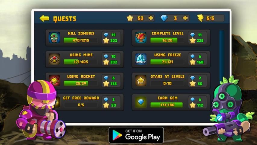 There are many incoming zombies, each one has different abilities such as freeze unit, suicide bombers and many more, but you will also have a wide selection of soldiers with different skills and strengths and you should choose the right soldier who is able to kill zombies without being killed.