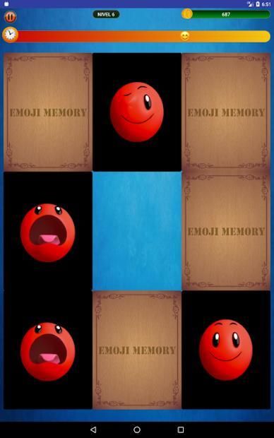 Juego de memoria Emojis con muchos Emojis animados. Completa las cartas con tiempo definido por cada nivel. Cada nivel posee un reto de tiempo y número de parejas. Que te diviertas!!!