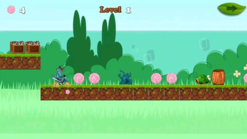 Dalam game ini Oggy berjalan dan melompat rintangan.