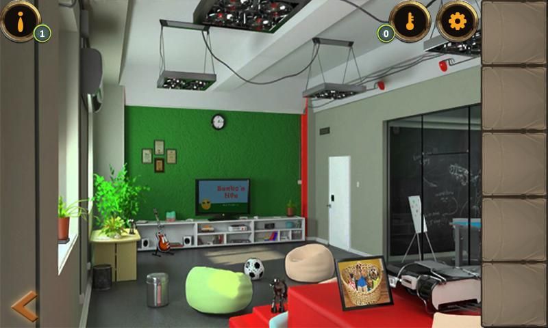 Kami menambahkan logika permainan asah otak. Anda akan harus memutuskan permainan asah otak pendek dan menebak teka-teki baru di setiap kamar.