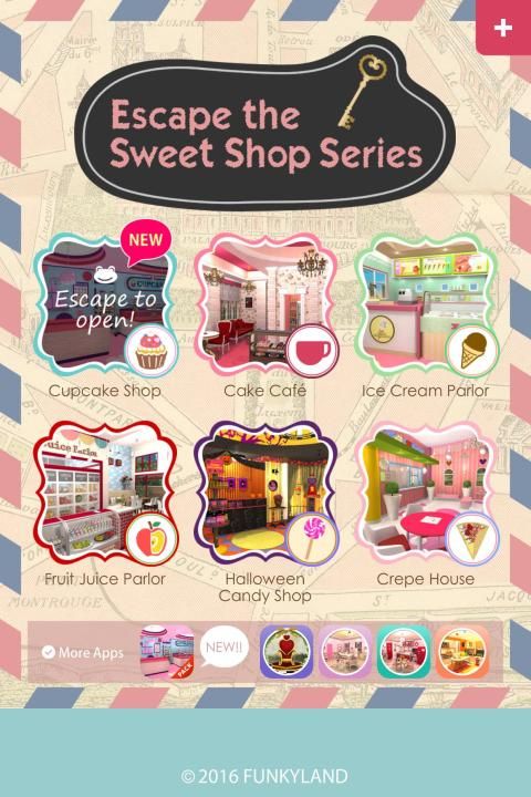 This special package includes the new game, "Cupcake Shop" and 5 previous escape games (Cake Café, Ice Cream Parlor, Fruit Juice Parlor, Halloween Candy Shop, and Crepe House).