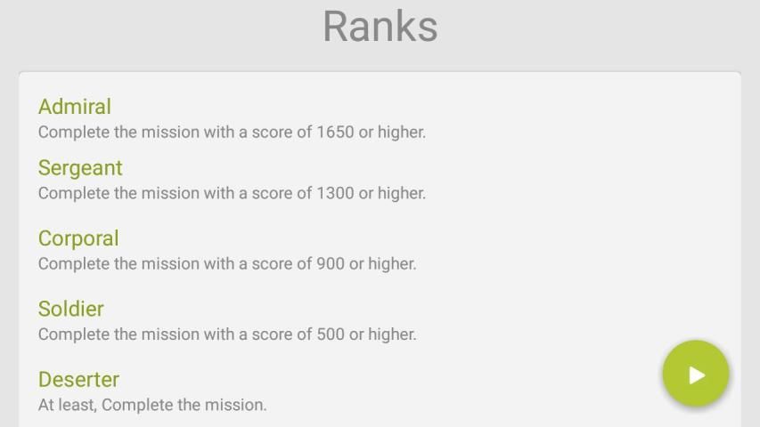 Anda bisa mendapatkan peringkat setelah menyelesaikan misi dengan skor tinggi seperti: