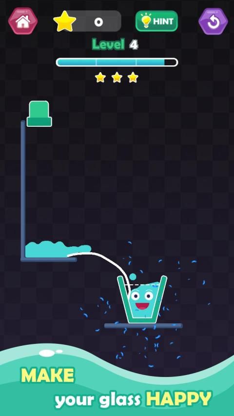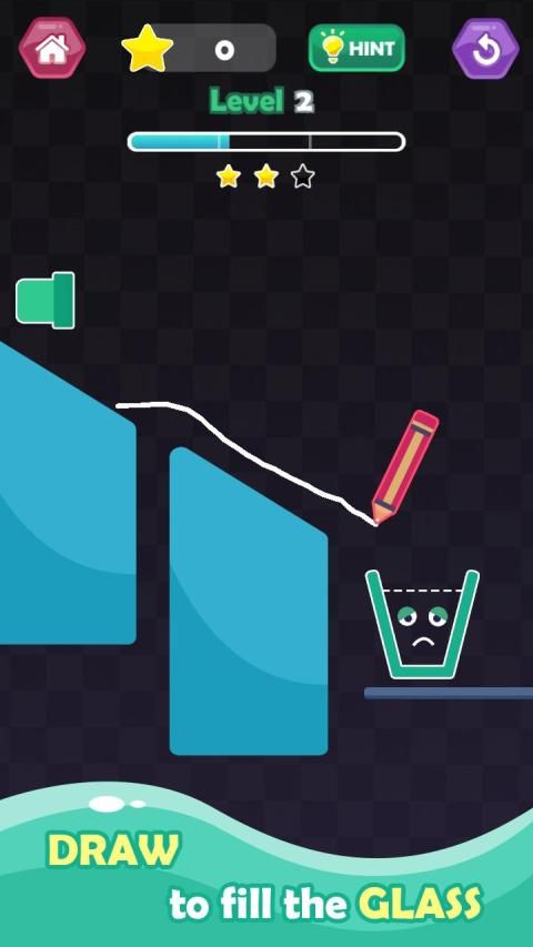 Happy Glass 2: draw line is amazing game for refreshment and for mind training so draw correct line with pencil to glass make the way perfect and clear for water to fill the glass and protect water from wasting.