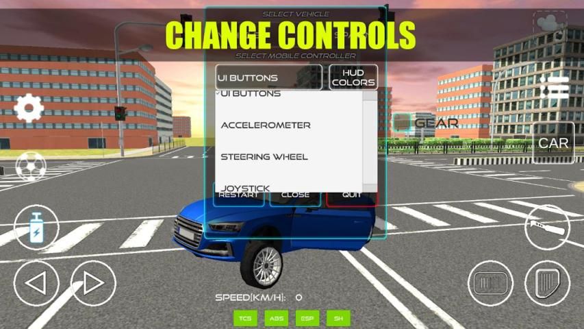 - Kontrol mobil Anda dengan setir, panah, akselerometer atau joystick