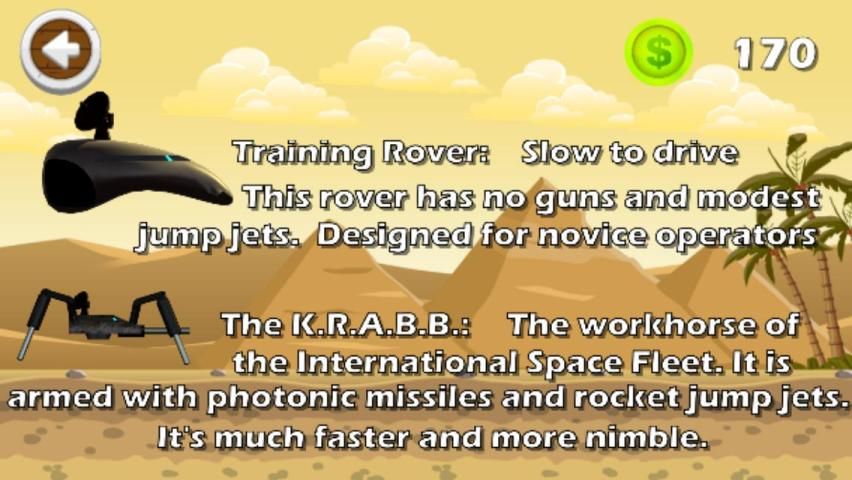 Anda harus menjelajahi dunia lain menggunakan berbagai penemu yang Anda inginkan. Hati-hati meskipun, ketika Anda melompat, flip, dan bahkan menembak melalui rintangan, tidak setiap dunia yang tak berpenghuni. Setiap rover memiliki kekuatan dan kelemahan sendiri. Dan setiap dunia adalah pengalaman berkendara yang unik dengan hukum sendiri fisika dan memiliki perangkap sendiri ....