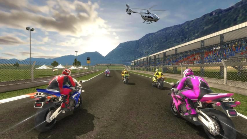 Different camera angles for motorcycle racing game