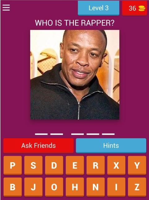 Do you like to listen to rap ? In our game you have to guess the name of the RAP STAR . There are a lot of famous RAP STARS like XXXTentacion , DRAKE , 50 CENT , Travis Scott and more! Download our game and realize how BIG FAN OF THE RAP you are. Try and train your brain – it’s funny and helpful! We made our quiz / trivia game to upgrade your knowledge!
