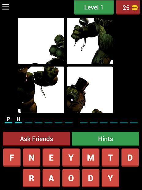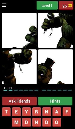 FNAF - 4 Pic 1Word is the game where you have to look at 4 pictures and guess the name of popular characters from FNAF!