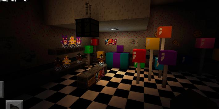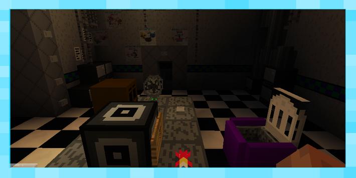 kecil, yang terdiri dari tiga bangunan yang sangat tidak biasa. Semuanya terhubung dengan "di Freddy's", jadi tempat ini sulit untuk memanggil aman. Animasi yang menyeramkan, berdiri dalam pose yang tidak wajar, koridor gelap, ruang dekorasi yang meriah, yang hanya memperbesar ketakutan Anda - di peta ini untuk MCPE Anda dapat menguji saraf Anda.