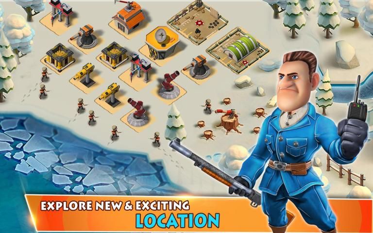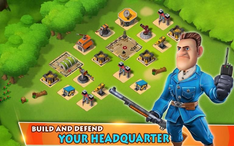 Mulai membangun dasar Anda dan terus meningkatkan itu dengan utilitas dan pasukan pertahanan untuk melindungi dasar Anda dari serangan secara real time multiplayer permainan Frontline Clash ini: Perang Epic.