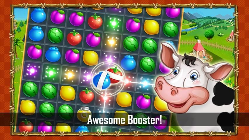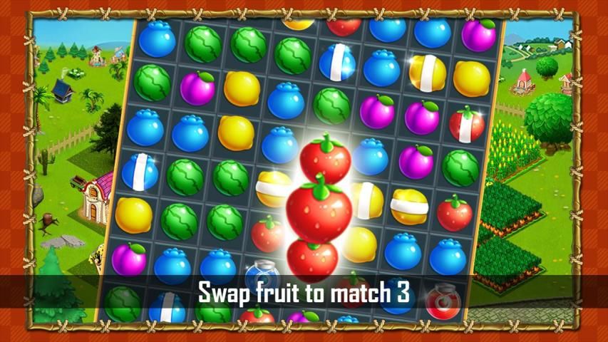 Memainkan buah pertandingan lezat 3 dan menghiasi taman peternakan Anda dengan berbagai tanaman, pohon dan binatang.