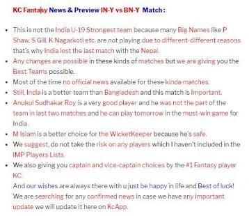 You can use our tips and info on sites dream11, halaplay, playerzpot, myteam11 DFC etc.