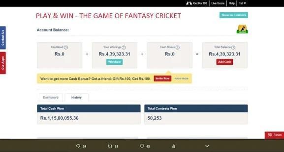 Dan KC sudah mendapatkan lebih dari 1,40 cr. di Dream11.
