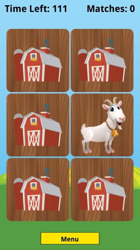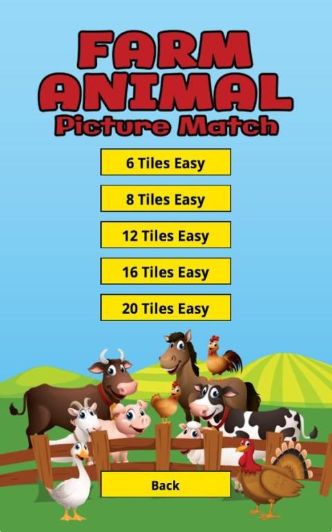 Farm Animal Picture Pertandingan adalah permainan pasangan gambar yang cocok pendidikan menyenangkan bagi anak-anak. Balikkan ubin hewan ternak untuk menemukan pasangan yang cocok. Ketika Anda mendapatkan pasangan yang cocok Anda akan mendengar suara binatang. Tujuan dari permainan ini adalah untuk mendapatkan semua pertandingan sebelum waktu habis. Ada tiga tingkat kesulitan dan lima set tile (6, 8, 12, 16, 20). Cobalah untuk mengingat di mana semua hewan sehingga Anda dapat mencocokkannya dengan benar. Prasekolah, balita, anak-anak TK, dan anak-anak akan memiliki begitu banyak bersenang-senang menemukan hewan ternak yang cocok di game edukasi ini untuk anak-anak. Hewan ternak berwarna-warni dalam permainan adalah: sapi, babi, domba, kambing, kuda, sapi, ayam, angsa, kalkun dan ayam. Grafis warna-warni cerah dan suara binatang akan menarik bagi anak-anak dari segala usia. Aplikasi ini membantu untuk mengembangkan pengakuan, konsentrasi dan memori.