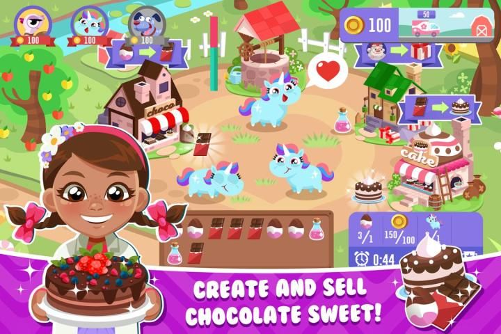 Membangun kerajaan manis Anda! Membuka pabrik-pabrik cokelat dan merawat hewan dengan dokter kecil Dotti. Membantu teman-teman Anda menciptakan bisnis yang sukses dan berteman dengan animals. sihir