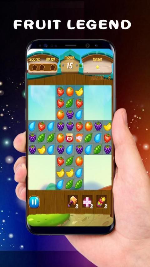 - Clear tiga atau lebih buah yang sama untuk mencetak poin, cobalah untuk menggunakan alat peraga permainan untuk membuat lebih banyak combo!
