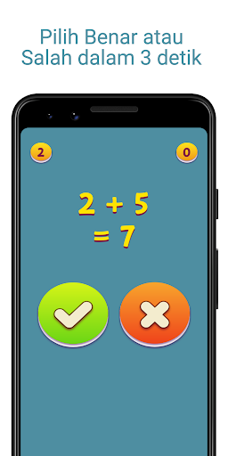 Game perhitungan matematika sederhana yang membantu Anda menguji dan mengembangkan keterampilan yang dibutuhkan untuk memecahkan contoh dengan cepat. Tidak ada level dalam permainan matematika. Anda harus menghitung dua angka yang diberikan dan memutuskan apakah jawabannya benar atau salah. Tiga detik diberikan untuk setiap pertanyaan. Setiap kali tiga detik berakhir atau Anda mengklik tombol yang salah, permainan berakhir. Setelah menjawab tiga puluh pertanyaan, dua detik diberikan untuk setiap pertanyaan, dan setelah menjawab enam puluh pertanyaan, satu detik diberikan untuk setiap pertanyaan.