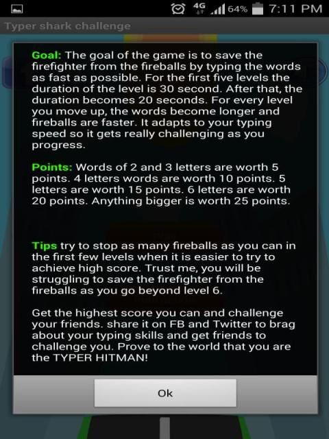 → Hal ini sangat menantang dan akan beradaptasi dengan kemampuan Anda mengetik. Semakin banyak tingkat Anda selesai, semakin besar kata-kata dan semakin cepat bola api menjadi