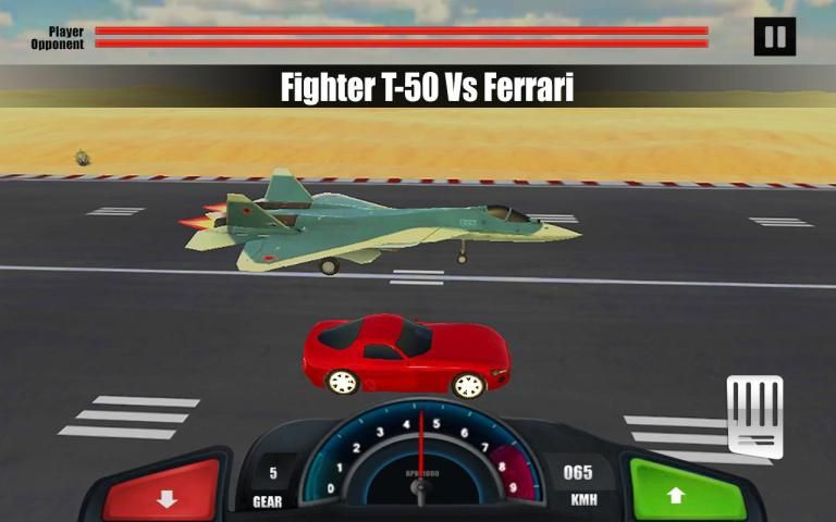 Jet Vs Mobil Racing: Top Jet Stunts Mobil adalah pertama kalinya di toko-toko ponsel 3D game balap antara jet dan olahraga mobil.