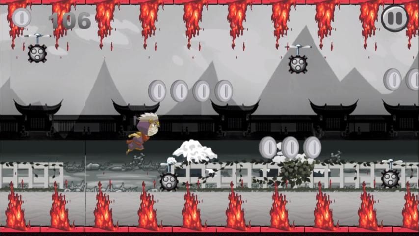 Fiendishly adiktif Ninja Boy game! kemajuan melalui tingkat, mengumpulkan koin, menghindari orang-orang jahat: D satu sentuhan, jenis permainan terampil, sangat sangat mudah untuk bermain.