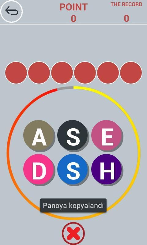Ketika Anda mengklik pada huruf dalam surat dalam bingkai persegi situasi menjadi pasif dan tidak dapat diklik. Anda dapat menghapus semua huruf dengan mengklik tombol Delete atau menghapus huruf di lingkaran.