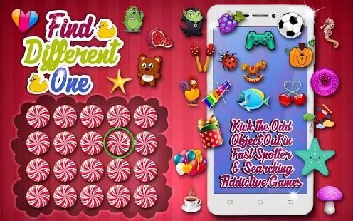 Apakah Anda menyukai lucu permainan otak yang dapat menguji logika Anda dan melatih keterampilan Anda? Satu jenis permainan asah otak yang juga berfungsi sebagai uji reaksi dan tes kecepatan yang aneh satu keluar jenis permainan. Tugas Anda adalah untuk cari perbedaan objek dan, secepat Anda bisa, tekan di atasnya. Mereka adalah menantang permainan dan mereka melibatkan serius permainan otak. Ini termasuk dalam kategori permainan untuk anak perempuan dan anak laki-laki permainan untuk, tetapi dapat dimainkan oleh orang dewasa juga. Cari Satu Perbedaan Permainan adalah aplikasi yang benar-benar gratis dan cukup lucu juga. Setelah Anda unduh itu, Anda akan melihat bagaimana cantik itu dan bagaimana keren objek terlihat. Sebagai bagian dari permainan untuk seri anak-anak, ada juga manis objek juga. Tidak mengandung unsur-unsur khas cari perbedaan permainan atau objek tersembunyi permainan, meskipun dapat dibandingkan dengan mereka. Jika Anda suka jenis-jenis aplikasi, Anda pasti akan menyukai ini satu setelah Anda unduh itu. Hal ini gratis dan akan memberikan jam lucu dan keren tingkat.