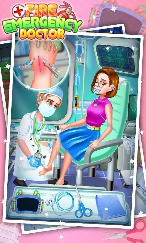 Gadis-gadis itu terjebak dalam gedung yang terbakar. Silahkan mengembang bantalan udara bagi mereka untuk melarikan diri. Oh tidak! Seorang gadis jatuh di tanah dan kakinya yang rusak. Silakan memberinya kaki pengobatan darurat, dan kemudian membawanya ke rumah sakit. kakinya membutuhkan operasi segera. Ada 5 bagian: