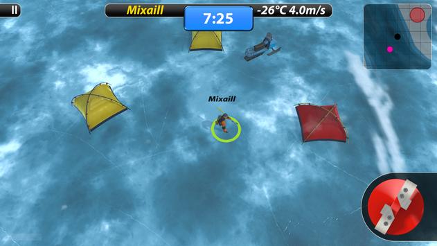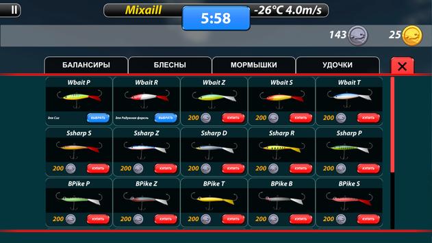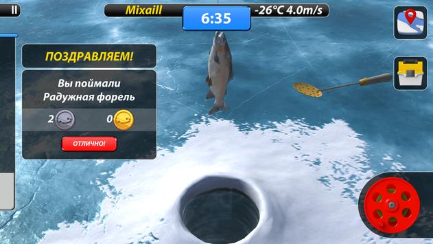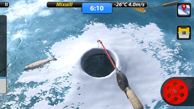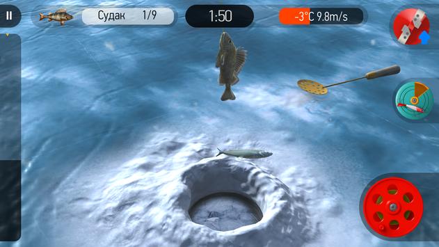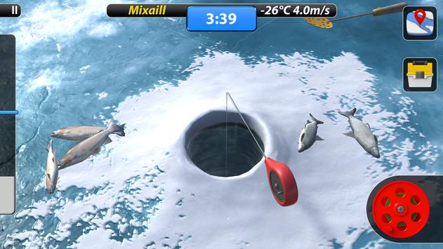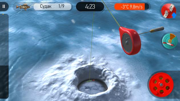 Setelah hitungan mundur dengan klik, pindahkan pemain ke es. Tombol "bor" memungkinkan Anda untuk mengebor di tempat yang ditentukan, setelah itu Anda pergi ke tempat kejadian dengan lubang.