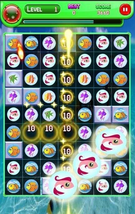 1. Hanya mencocokkan tiga atau lebih sama ikan identik dengan mencetak poin.