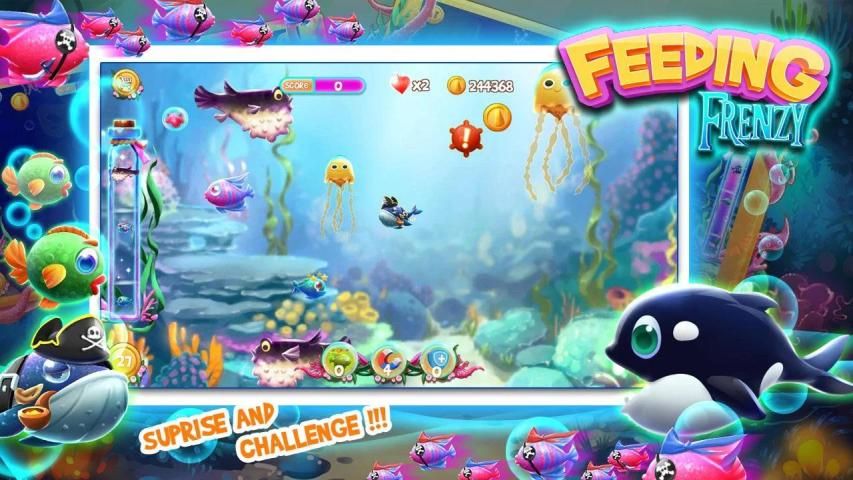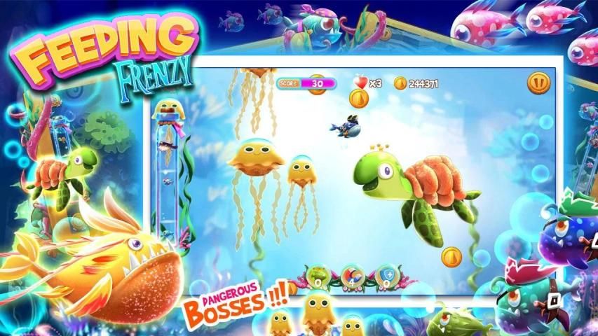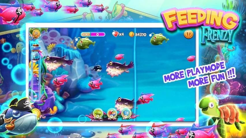 Ikan Makan - dunia bawah laut Feeding Frenzy, di laut yang tampaknya tenang, tetapi tersembunyi dunia manusia dengan krisis yang sama, kehidupan laut dalam kompetisi hutan untuk makan cara kecil untuk bertahan hidup, tidak hanya untuk mendapatkan makanan mengisi perut, yang lebih penting belajar bagaimana melindungi diri mereka sendiri.