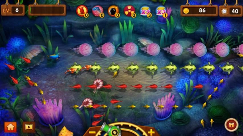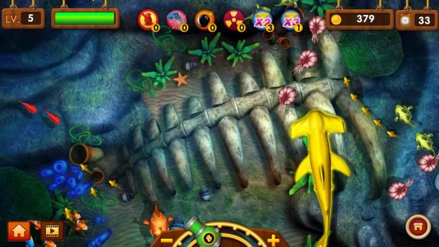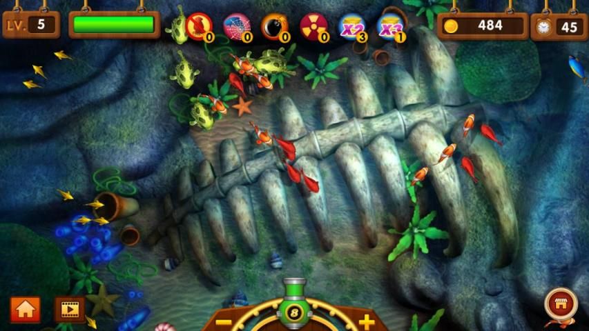 Touch your phone to indicate the direction of shooting; your fish cannon will fire net to catch fish on its way. You will have chance to catch all the fish within the diameter and you will be rewarded with coins. Each net you fire will cost you corresponding coins and increase the Cannon’s Power Gauge Also